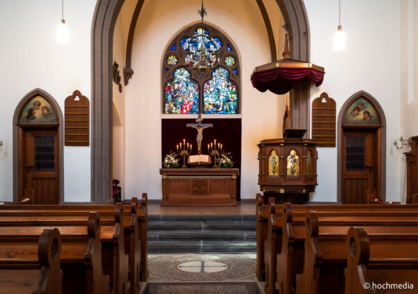 Die Evangelische Kirche Königsteins wurde 1888 als neugotische Kirche errichtet. Damals diente sie der erst im Entstehen begriffenen Kirchengemeinde und den Angehörigen des Nassauischen Hauses als Hofkirche. Herzog Adolph und Herzogin Adelheid-Marie haben wesentlich zur Ausstattung der Kirche beigetragen: als begabte Landschaftsmalerin hat die Herzogin Kanzel- und Emporenbilder beigesteuert, und gemeinsam mit ihrem Mann schenkte sie der Kirche Glocken und Kronleuchter.